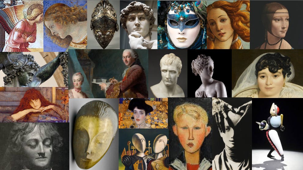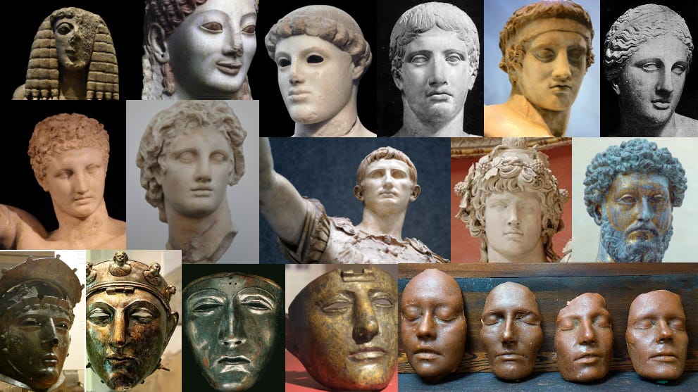 In my absence I have been working on an extended project of original research, which I am now excited to start sharing with you. Over a series of articles I aim to explain my theories about why Western masking traditions and the Western face is so different from other cultures. Using horror masks as the focus, we will explore together the metaphysics of the European face and mask, skin and pain, horror, the sublime, identity and the self - starting with Greek serenity and culminating in digital AI horror. I truly believe that this is a new contribution to the way we think about the face and the function of horror as a genre. I sincerely hope you enjoy.
