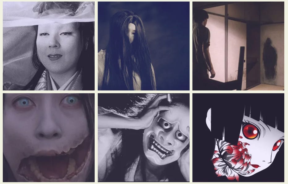 Finally, performative normality is a feature of both genres, which helps with cross-pollination -although the social contexts differ in some key ways. Scary monsters and demons are the stuff of stories all around the world, but J-horror and Western horror - with their internalised psychological battles - find the cracks in normal life and exploit them. What’s going on underneath family life, smiling faces, the routine 9 to 5, the performance of normality. In the West this is repression or denial. The social mask exists, but the narrative pressure usually pushes toward exposure and something hidden must come out (eg Babadook, Rosemary’s Baby, Get Out, Hereditary). In Japan normality is not simple hypocrisy, bur rather a social duty, a discipline or a way of containing chaos, which gives it a different tone. Hence why J-horror can feel subdued, muted, affectively flattened, eerily polite even to a Western audience. But one word in particular constantly appears in reviews of J-horror films, dread. Dread is built and amplified by the skilful refusal of dramatic release: rather than the climax-catharsis / unmasking / confrontation of Western aesthetic logic, J-horror can finish with a sense of unease, lingering residue, relational stickiness between people, utilising Japanese concepts like yūgen and mono no aware to great effect.